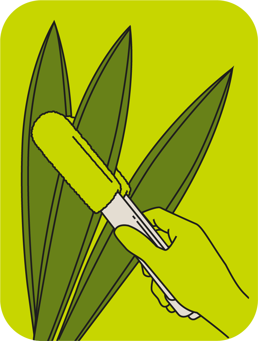Use the Leaf Sweep as a gripping tong or a flat cleaning surface. Remove one tooltip to achieve precision cleaning of stubborn buildup or to target smaller areas such as leaf bases, veins and midribs.