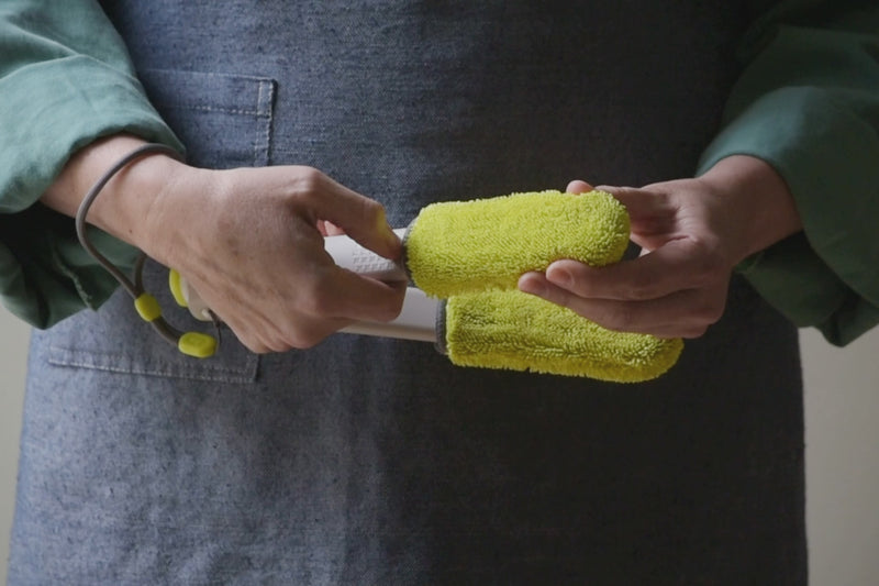 Upgrade from two-handed leaf wiping to simplified single-handed design and intuitive push button. Use with cleaning, treating and polishing solutions.
